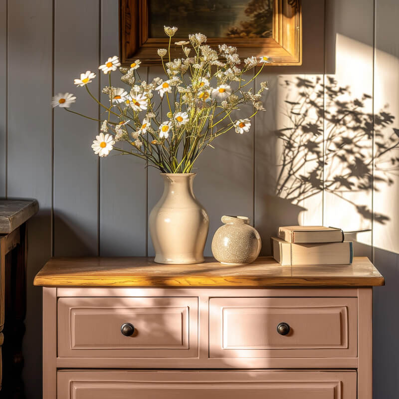 Dennoch sind diese Wandfarben vollkommen matt, so dass du mit ihnen eine perfekte nostalgische Optik in dein Zuhause zaubern kannst. Hast du eine Leidenschaft für den Vintage Look, einen gepflegten Landhausstil oder eine Wohnatmosphäre im Shabby Chic, hast du mit CosyColours Kreidefarben deine Farben gefunden. Das Tolle ist, dass es jeden Farbton der CosyColours nicht nur als Wandfarbe, sondern auch als Möbelfarbe gibt. Das ermöglicht interessante Ton-in-Ton-Gestaltungen.