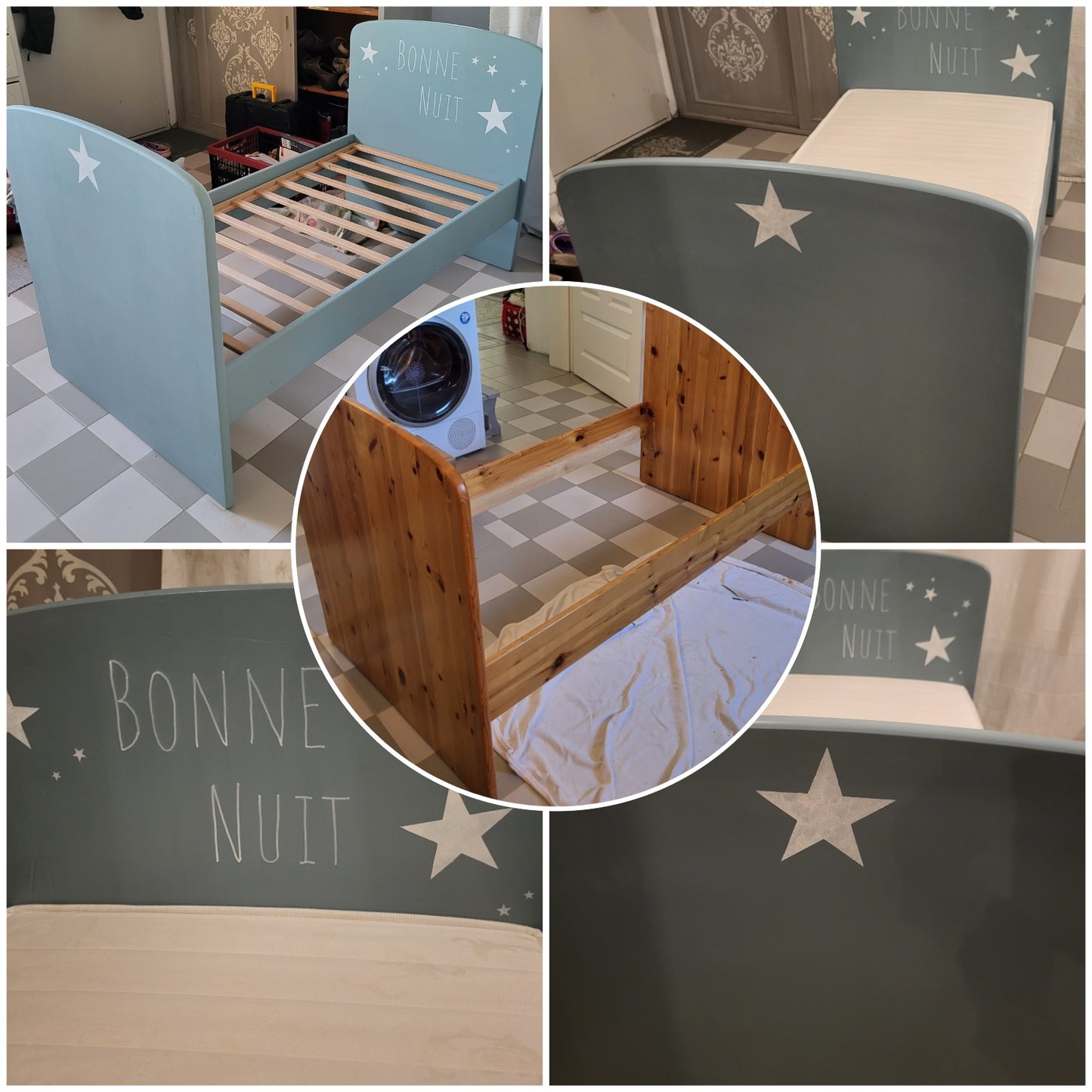 Von 0815 auf einzigartig! Farbe "Eucalyptus" matt von PtP, geölt. Leider hat sich das Bett teilweise etwas gelblich verfärbt. Das muss an dem Öl liegen, welches ich benutzt habe. Aus diesem Grund gibt es Jenny jetzt zum genialen Preis von 65,-€!