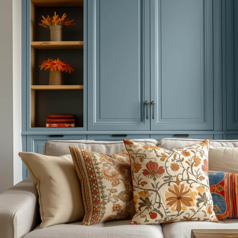 Cloudy Blue ist ein Blau mit vielen grünen Farbanteilen. Hier ergeben Grau, Blau und Grün eine freundliche Mischung.