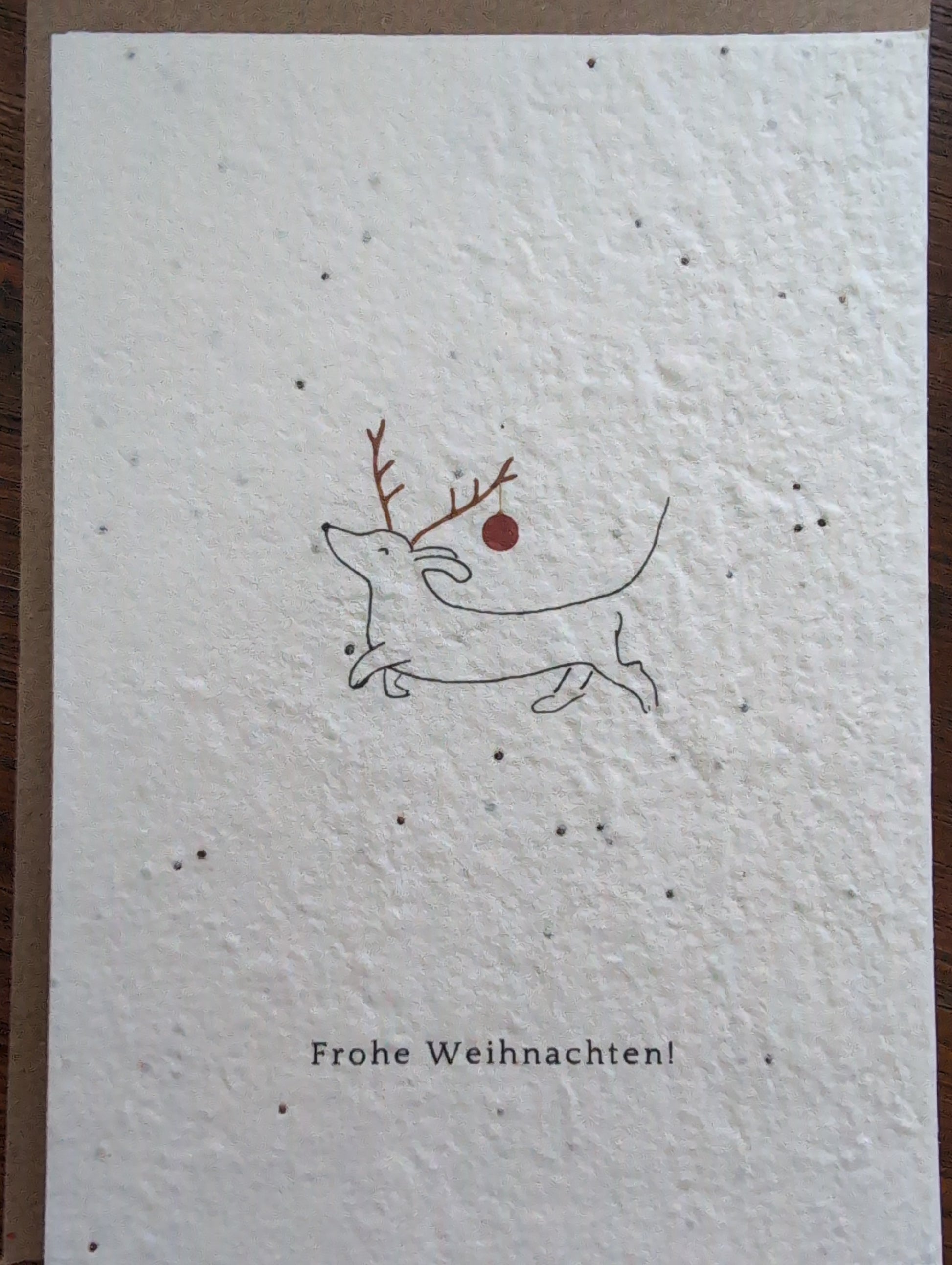 Einpflanzbare Grußkarte mit Umschlag FROHE WEIHNACHTEN! Dackel