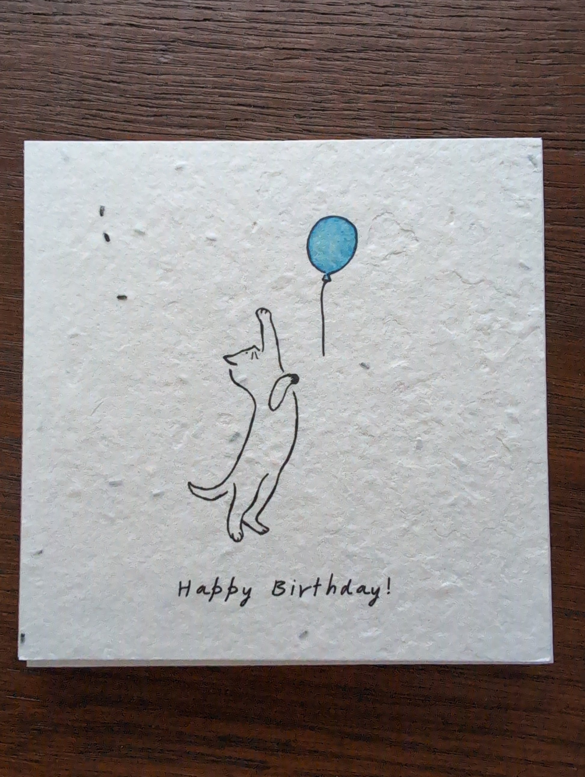Einpflanzbare Grußkarte mit Umschlag HAPPY BIRTHDAY quadratisch Katze