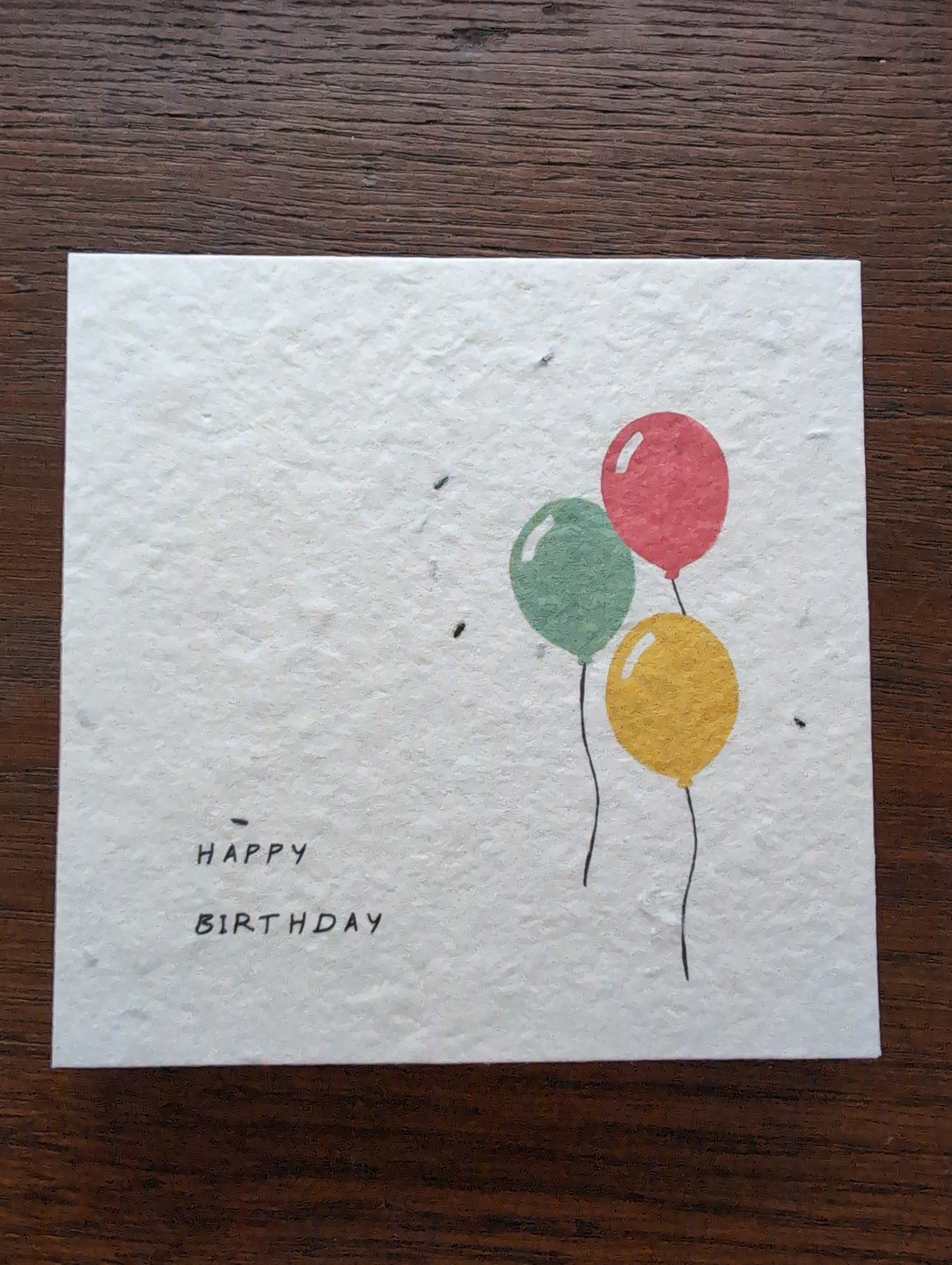 Einpflanzbare Grußkarte mit Umschlag HAPPY BIRTHDAY quadratisch Luftballons