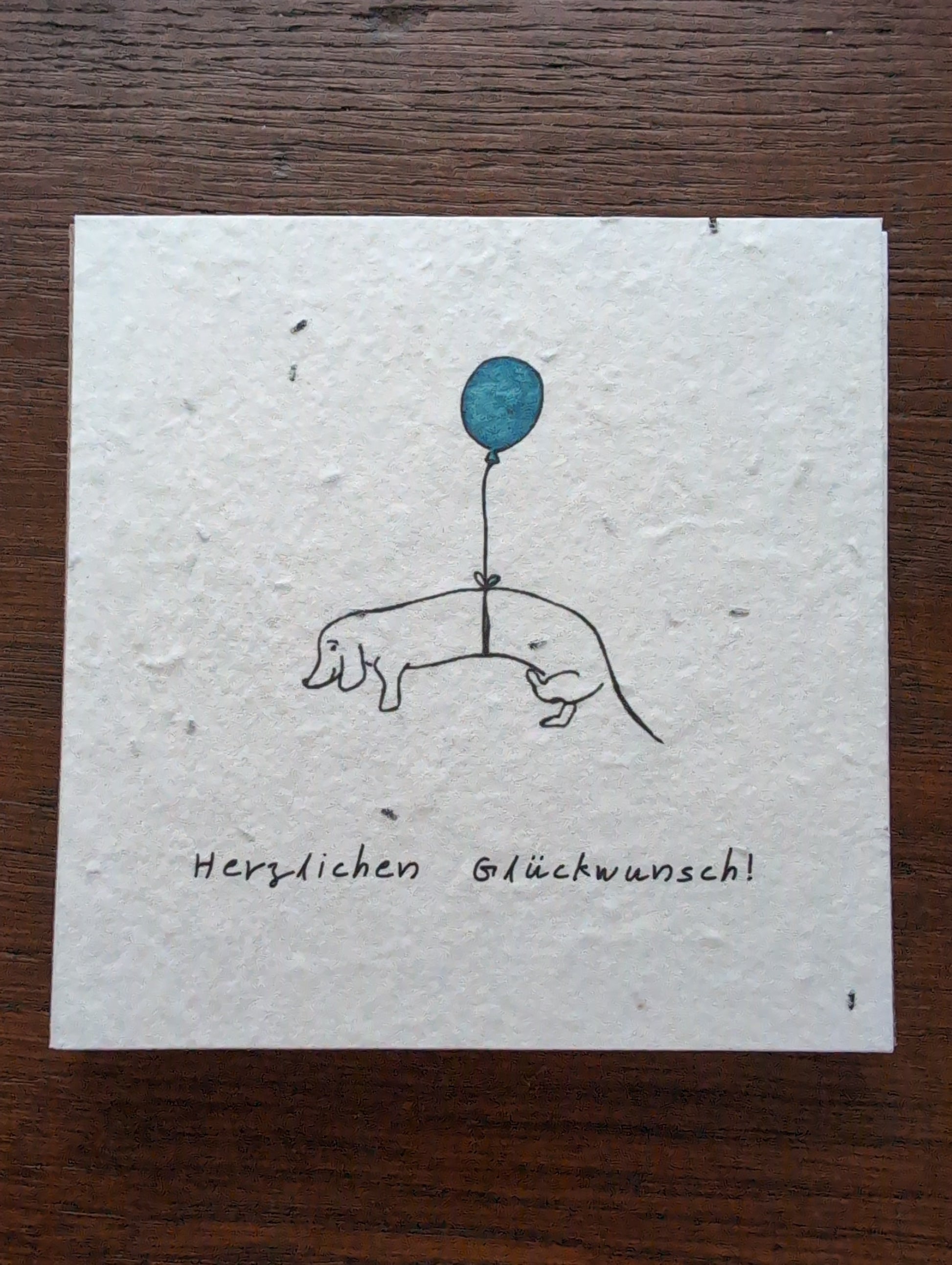 Einpflanzbare Grußkarte mit Umschlag HERZLICHEN GLÜCKWUNSCH quadratisch Dackel