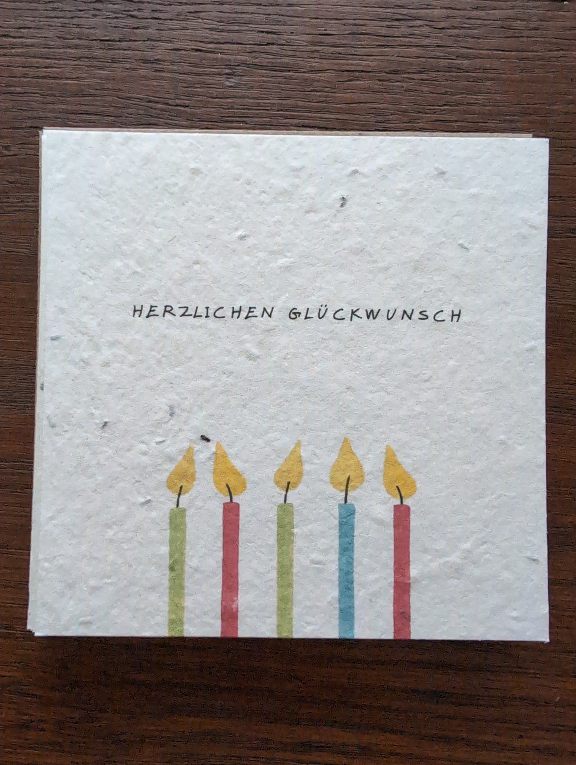 Einpflanzbare Grußkarte mit Umschlag HERZLICHEN GLÜCKWUNSCH quadratisch Kerzen
