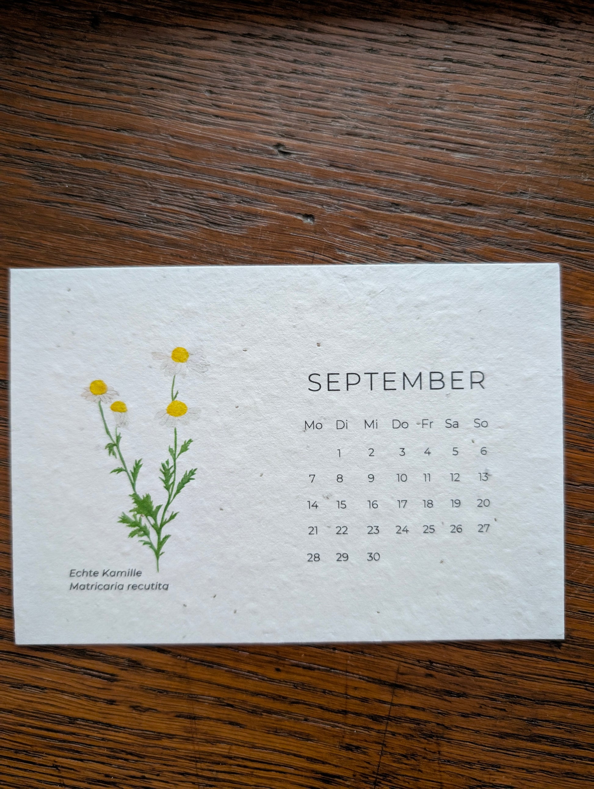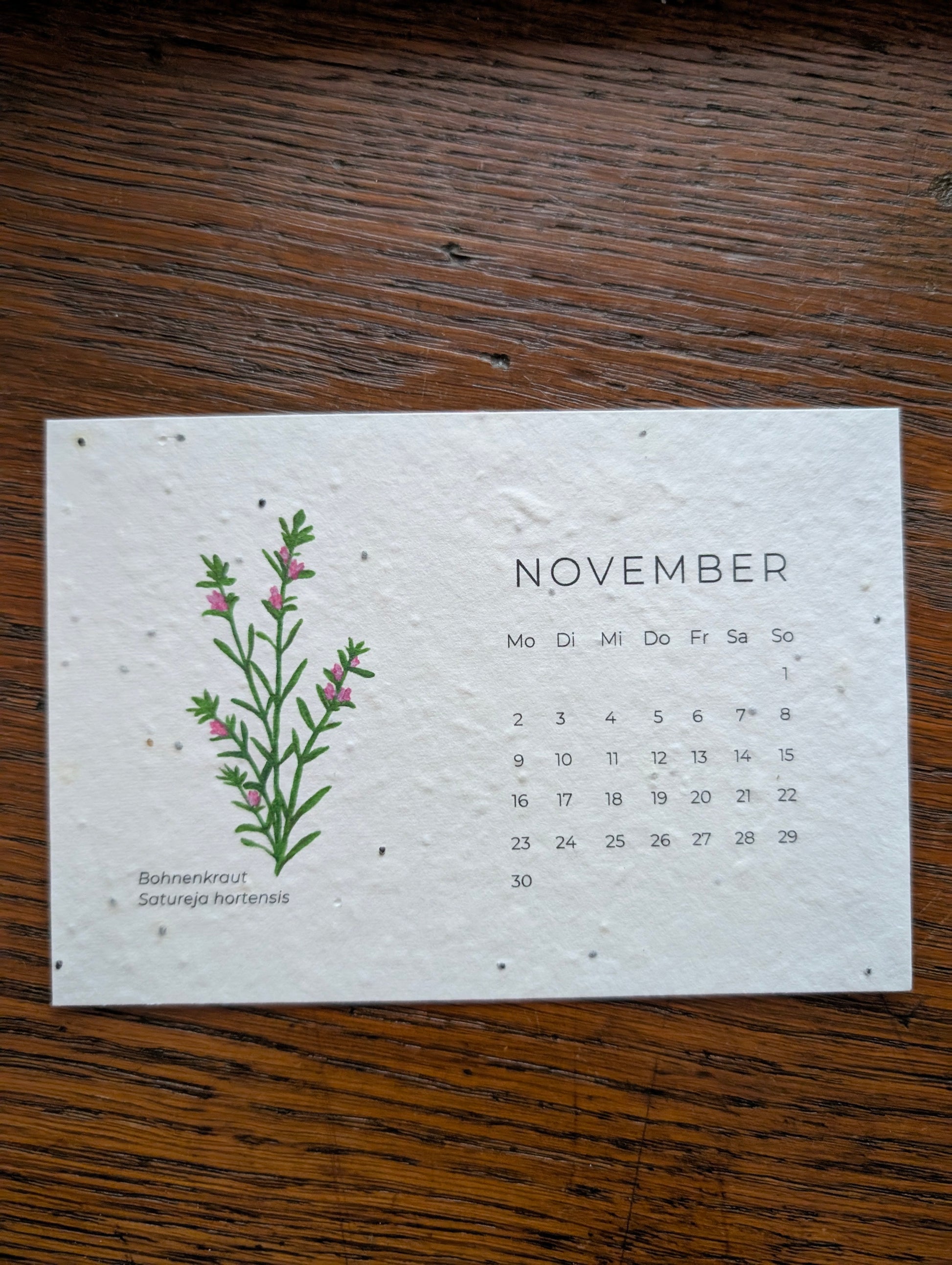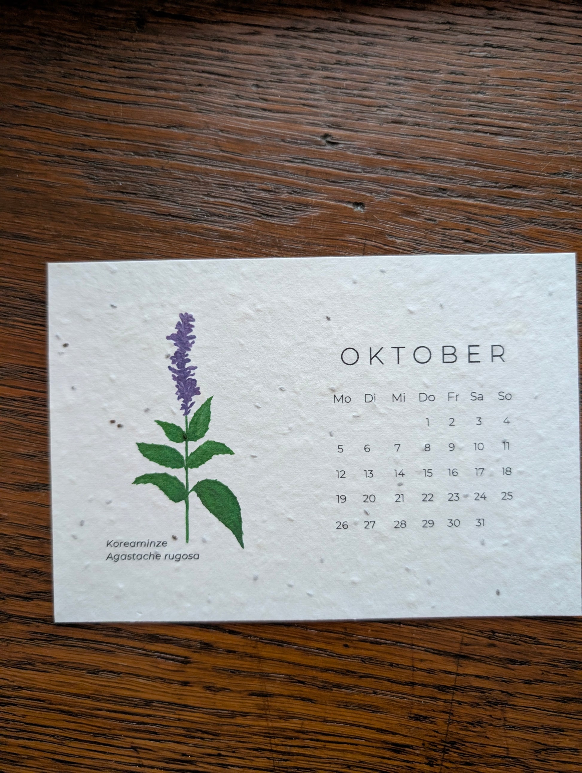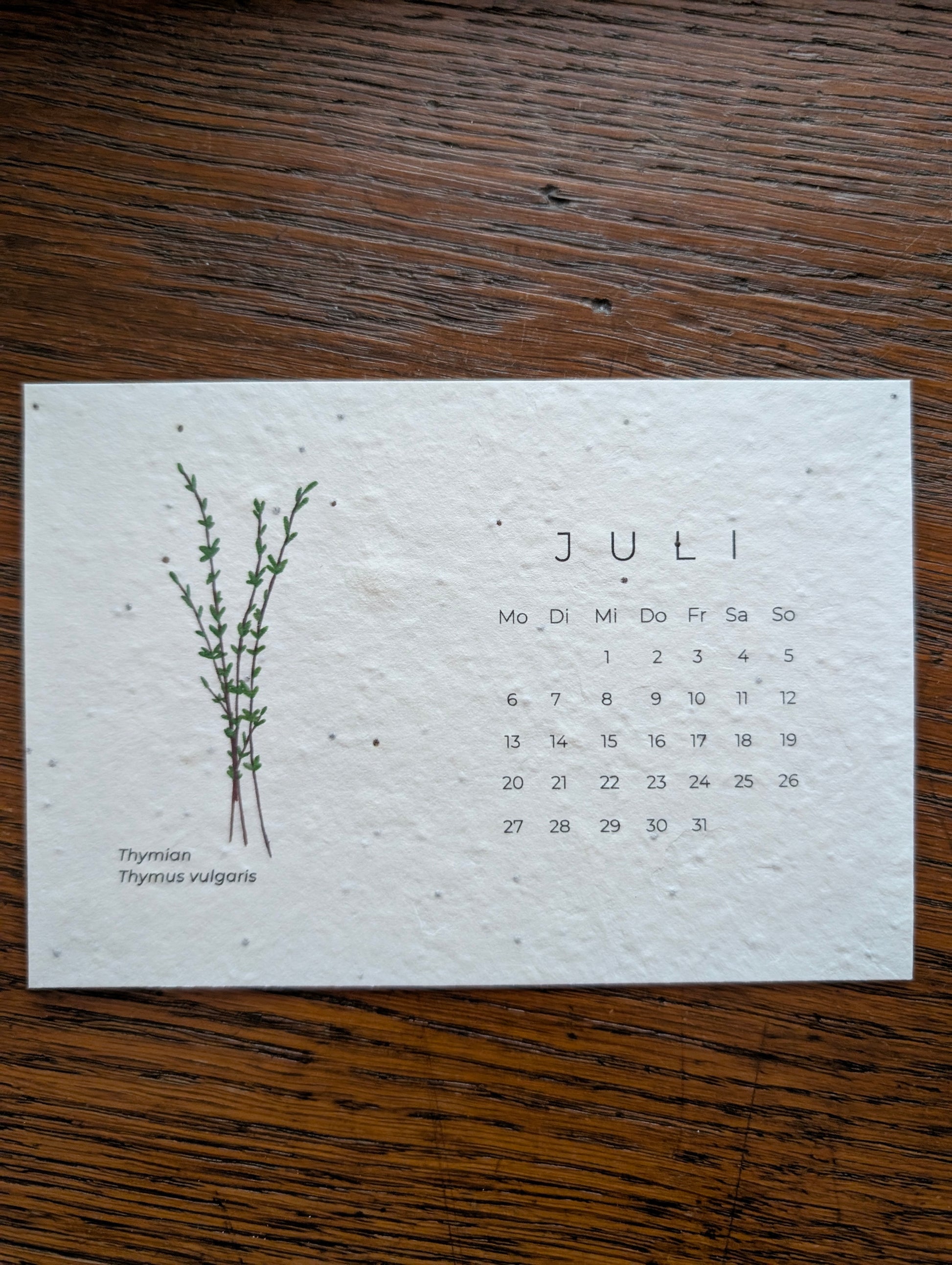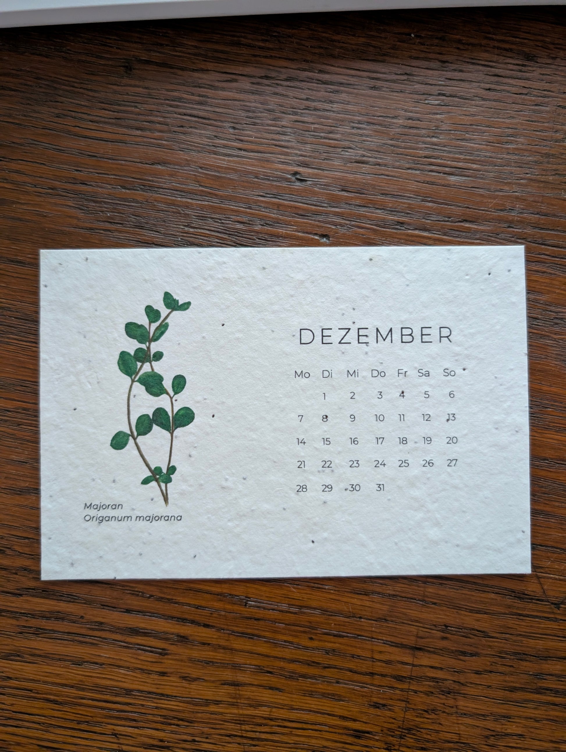 Enthält 12 einpflanzbare Kalenderseiten mit Demeter-Saatgut.