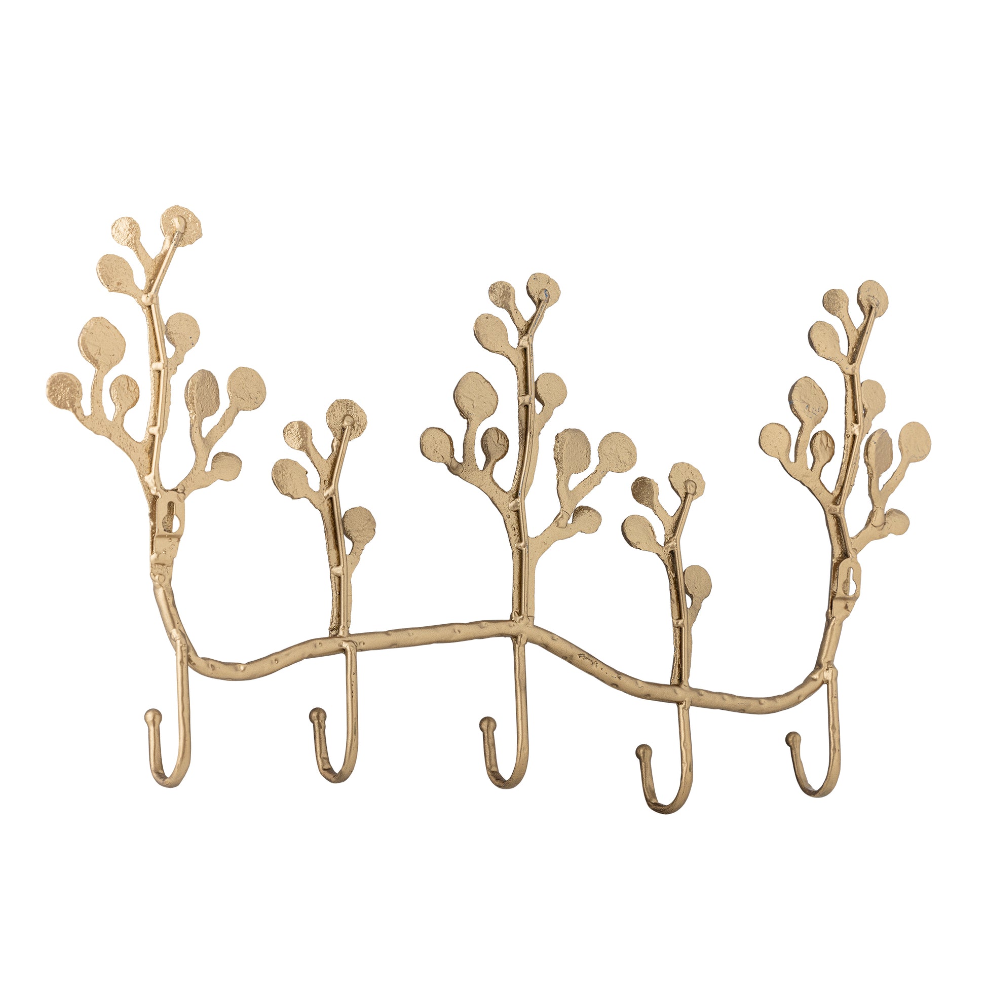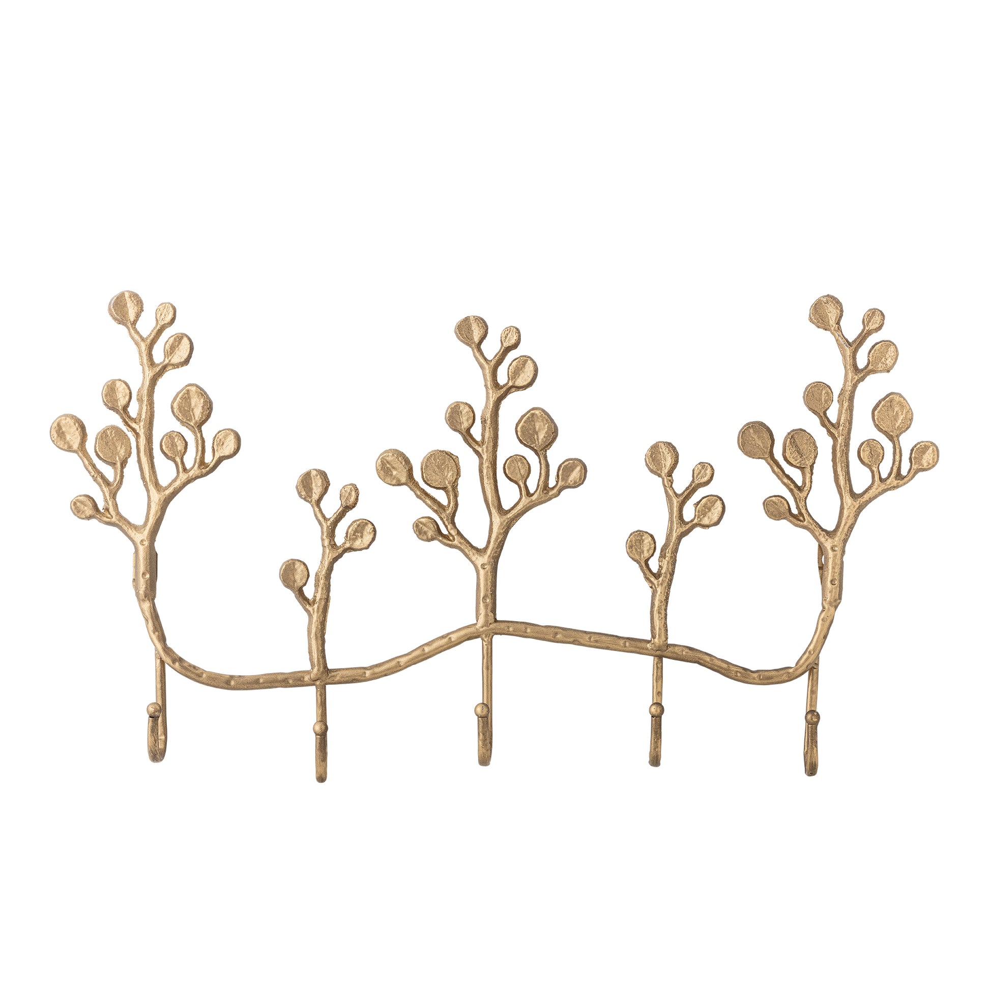 Der Garderobenständer Padova von Creative Collection ist aus Eisen mit Messingoberfläche gefertigt und hat die Form von Ästen mit fünf Haken. Die geschwungene Silhouette verleiht der Wand einen skulpturalen Look und erleichtert das Aufhängen von Kleidung, Taschen oder Schmuck.