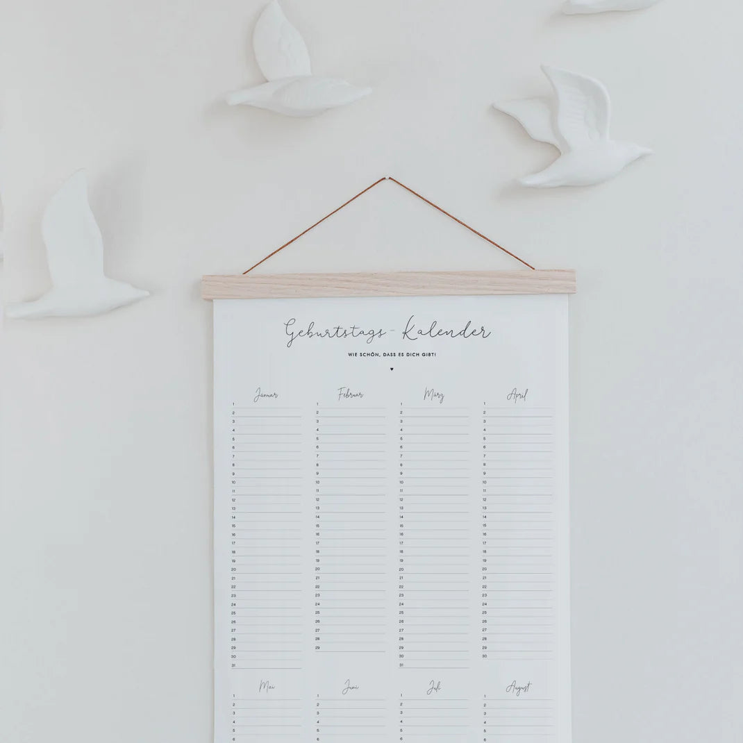 Achtung: Die magnetische Posterleiste ist NICHT im Lieferumfang enthalten! Möchtest du zu unserem wunderschönen Geburtstagskalender eine unserer magnetischen Posterleiste aus Eiche dazubestellen? Für den Geburtstagskalender eignet sich am besten die Posterleiste im Format A3.
