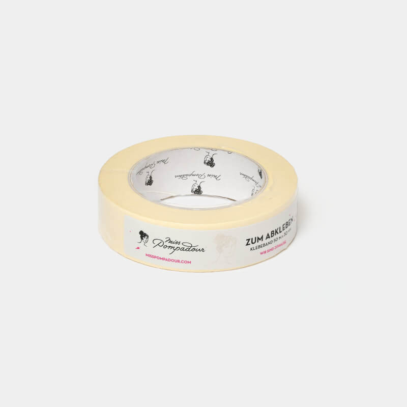Mit dem umweltfreundlichen Zum Abkleben - MissPompadour Klebeband 30mm streichst du scharfe Kanten. Dieses elastische, 30 mm breite und 50 m lange Abklebeband haftet mit Naturkautschuk. Hinweis: Entferne Klebeband immer, bevor die Farbe getrocknet ist. Streichst du Lack in mehreren Schichten, löse die Schichten vorsichtig mit einem Cutter, bevor du das Klebeband abziehst.