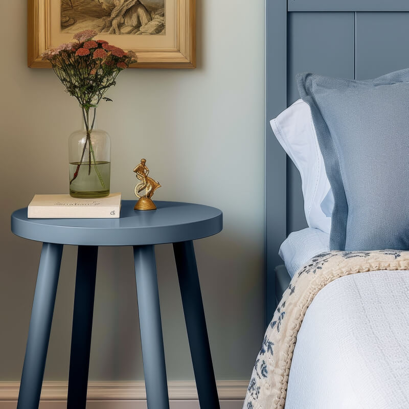 Stormy Sky Blue ist ein satter, intensiver Blauton mit vielen samtigen Grauanteilen. Der Farbton tendiert ganz leicht zu Lila, was ihm seine warme Ausstrahlung gibt.