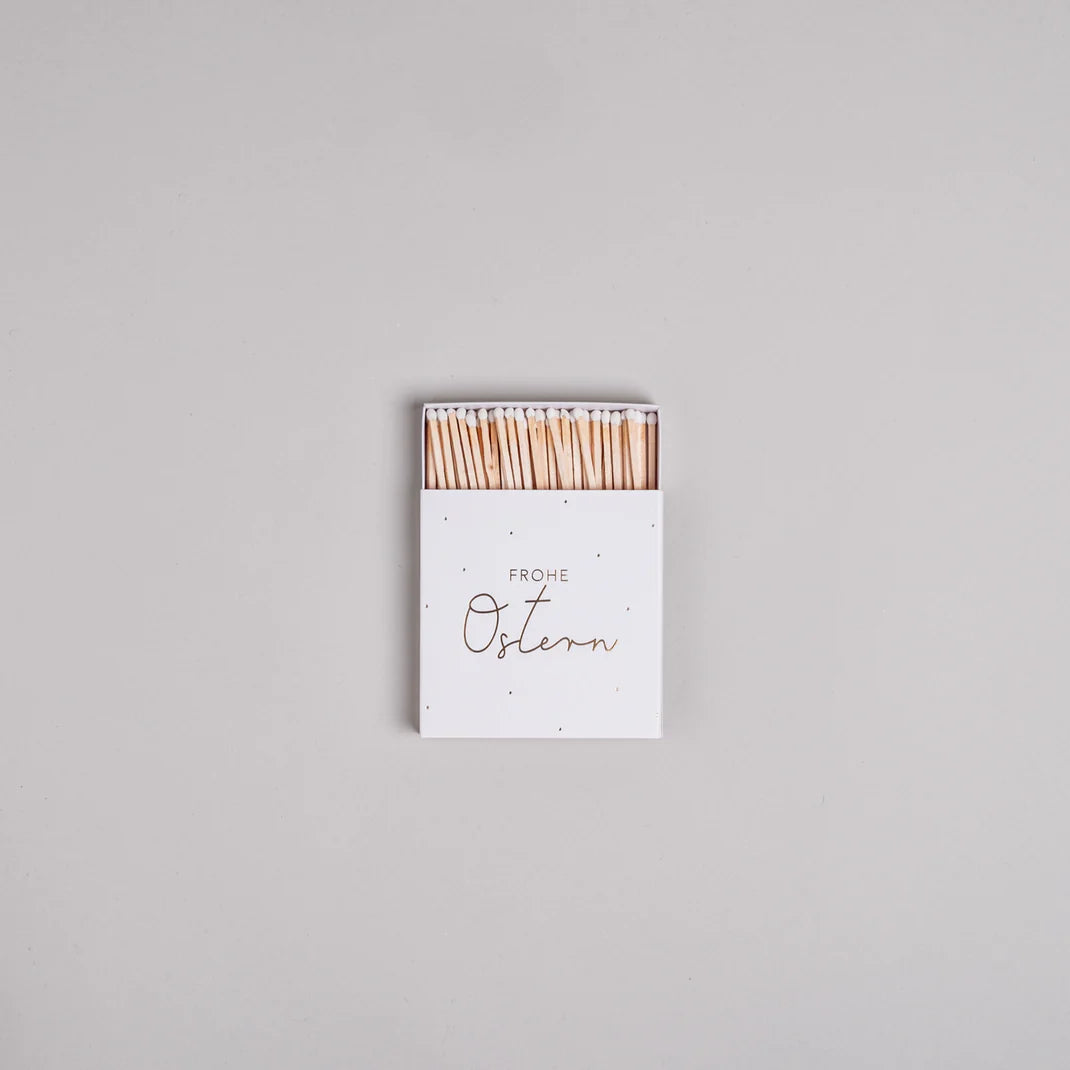 Die Streichhölzer selbst sind nicht nur praktisch, sondern auch ein stilvolles Highlight. Mit einer Überlänge von ca. 9,5 cm und weißen Zündköpfen setzen sie farblich abgestimmte Akzente. Ideal für Osterkerzen oder als besonderes Detail in deiner Frühlingsdeko.