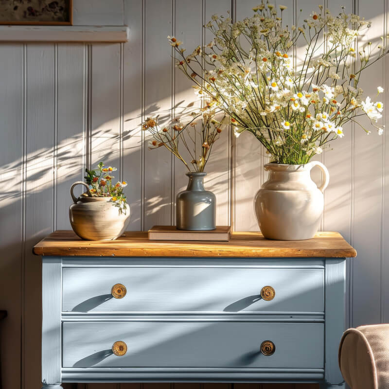 Dennoch sind diese Wandfarben vollkommen matt, so dass du mit ihnen eine perfekte nostalgische Optik in dein Zuhause zaubern kannst. Hast du eine Leidenschaft für den Vintage Look, einen gepflegten Landhausstil oder eine Wohnatmosphäre im Shabby Chic, hast du mit CosyColours Kreidefarben deine Farben gefunden. Das Tolle ist, dass es jeden Farbton der CosyColours nicht nur als Wandfarbe, sondern auch als Möbelfarbe gibt. Das ermöglicht interessante Ton-in-Ton-Gestaltungen.